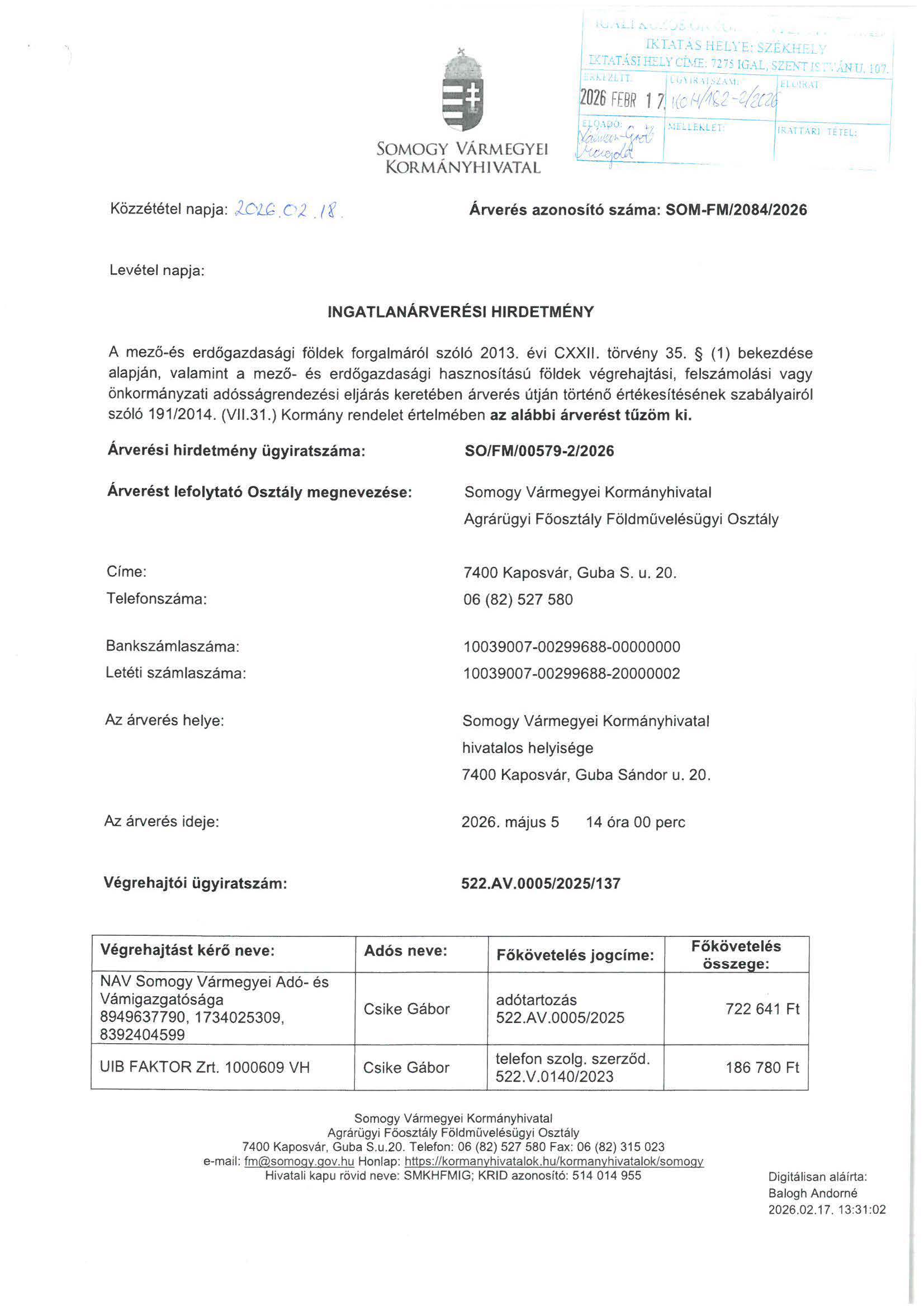 telefon: +36 (82) 529-217, e-mail: - észrevétel-tételi lehetőség határideje: 2025. 04. 08.